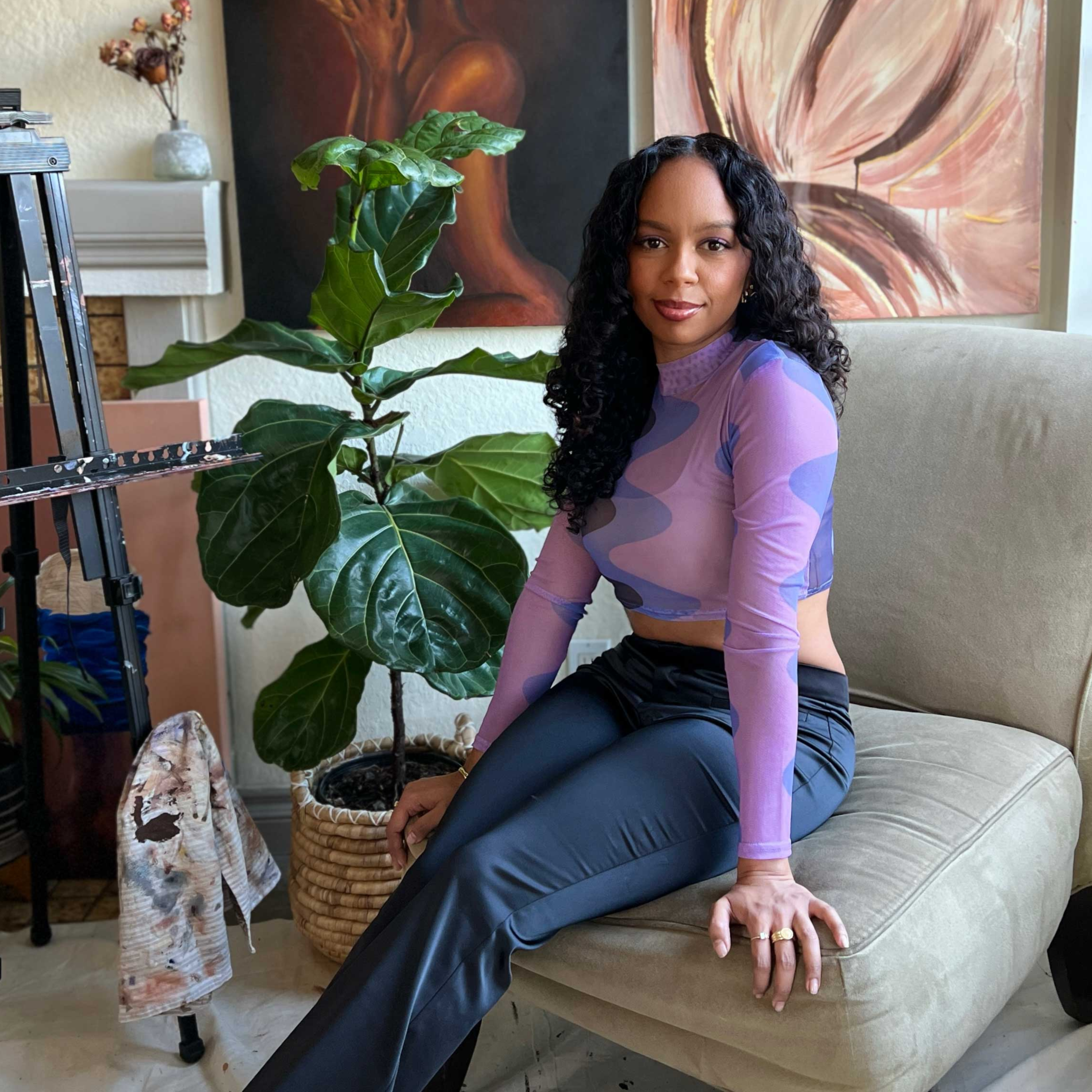 Ashley Adams is a Black Latina woman fine artist and entrepreneur, a SoCal native inspired by nature and her own identity. The colors in her work are informed by her trademarked signature "Hues of Me" skin tone color palette. Her work is rooted in her experience of being a woman of color and parallels her existence in society–always seen in fragments, never whole.